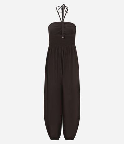 Ref: Macacão aladim de frente única, confeccionado em viscose com efeito acetinado,com decote reto, franzido no busto e lastex nas costas. Peça incorporada na tendência Boho. Este produto possui viscose certificada em sua composição, além de ter sido produzido através de processos mais sustentáveis, sendo ambientalmente mais responsável.