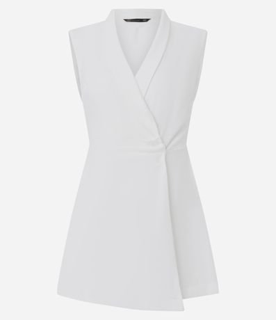 Macacão feminino curto alfaiatado confeccionado em viscose mais sustentável. Possui modelagem sem mangas, decote transpassado, drapeado lateral que define a cintura e recorte acinturado nas costas. Peça moderna e elegante para compor looks versáteis.