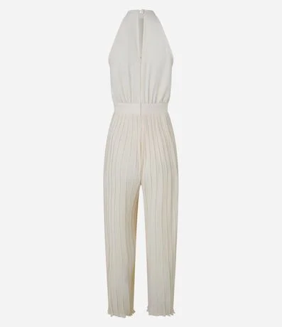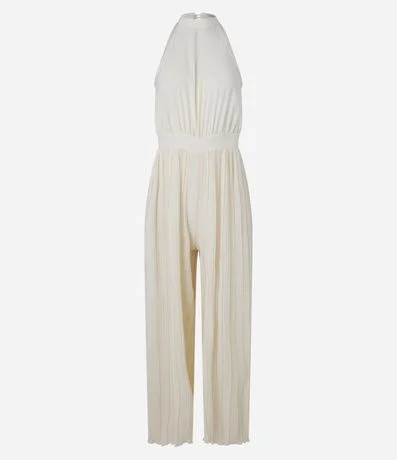 Macacão em chiffon plissado e acetinado, com cava americana.