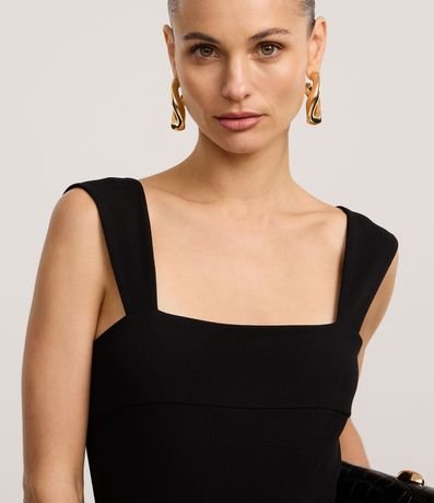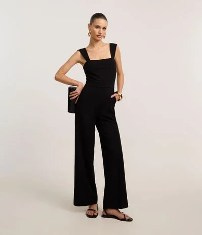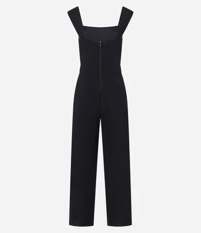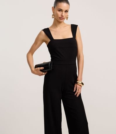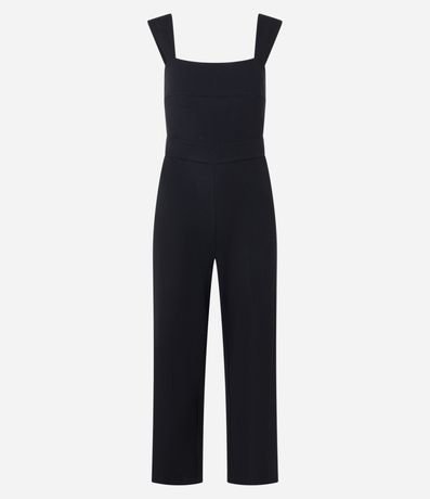 Ref: Macacão sem mangas, confeccionado em crepe, com alças largas e fechamento por zíper nas costas.