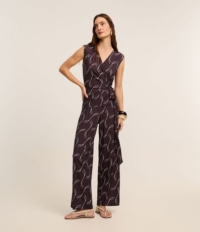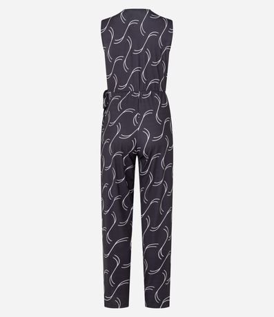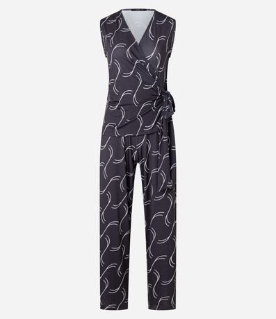 Macacão em Microfibra com Amarração e Estampa Geométrica
