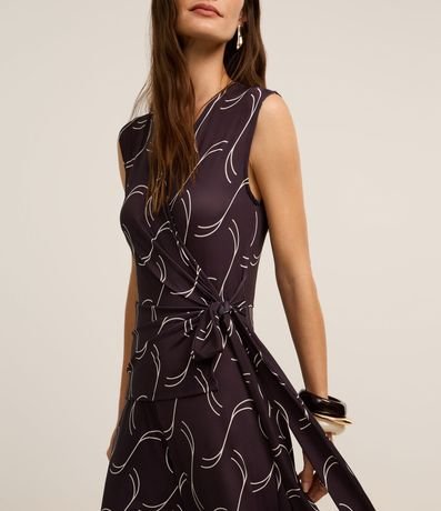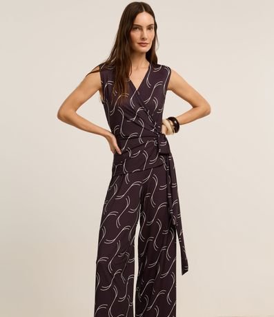 Macacão sem mangas, confeccionado em microfibra, com decote V, amarração com franzido na lateral e estampa geométrica. Este produto foi fabricado através de processos mais sustentáveis, sendo ambientalmente mais responsável.