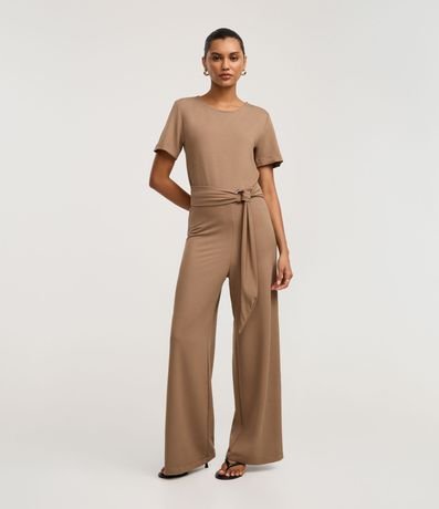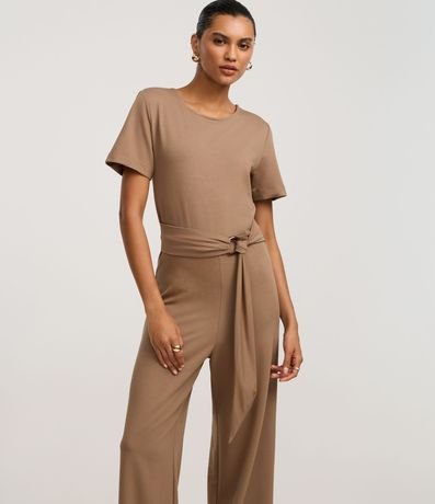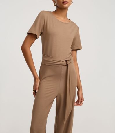 Ref: Macacão de mangas curtas, confeccionada em piquet, com gola redonda e cinto de tecido com fivela. Este produto possui viscose certificada em sua composição, sendo ambientalmente mais responsável.