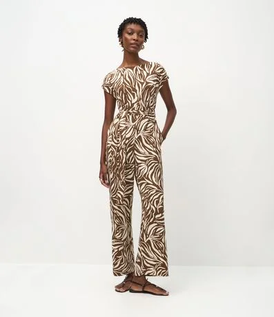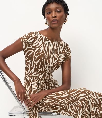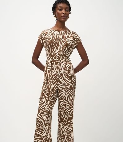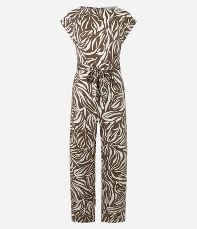 Macacão em Piquet com Estampa Abstrata e Cinto