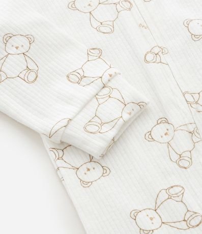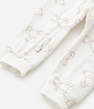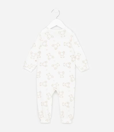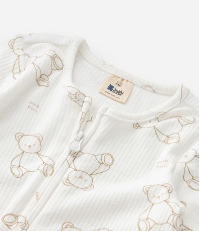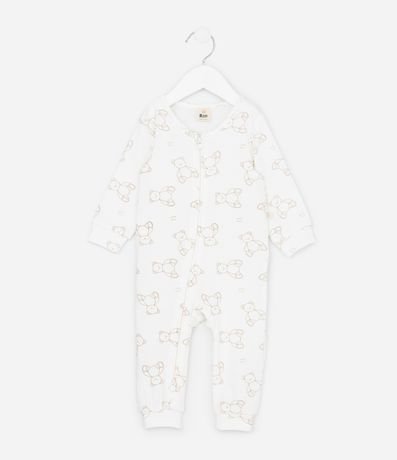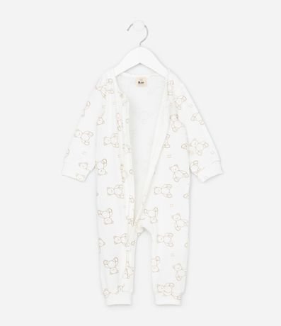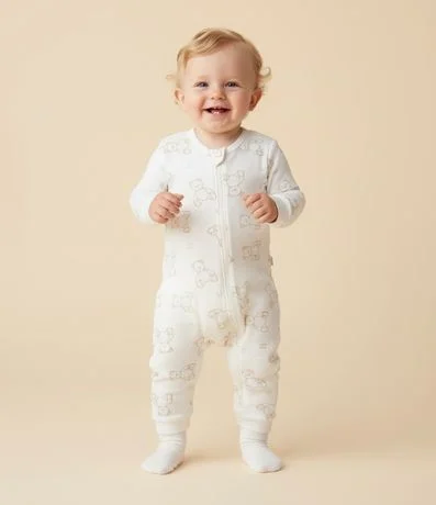 Ref: Macacão infantil longo confeccionado em algodão certificado BCI e boas práticas ambientais. Possui gola redonda, manga longa, estampa fullprint de ursinhos, punhos macios e fechamento frontal com zíper e protetor, garantindo conforto, elasticidade e praticidade para o dia a dia do bebê.