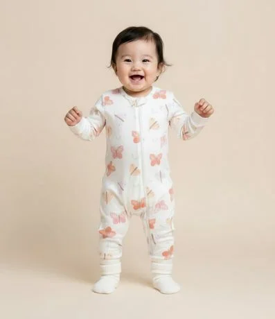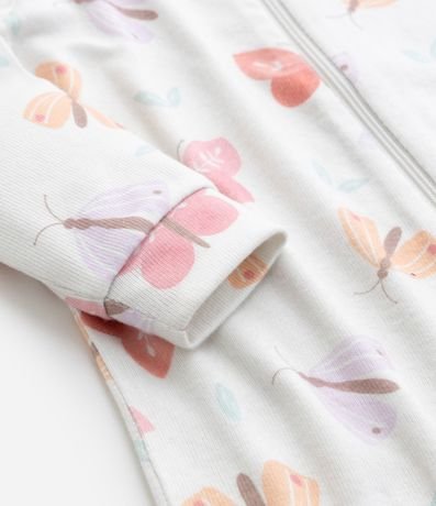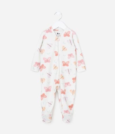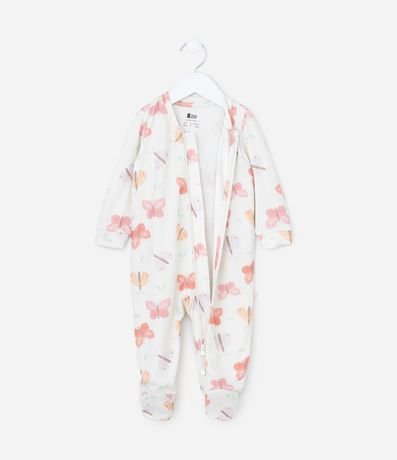 Ref: Macacão infantil confeccionado em tricô, com gola redonda e mangas longas. Possui toque suave e estampa de borboletinhas. Abertura frontal total com zíper.
