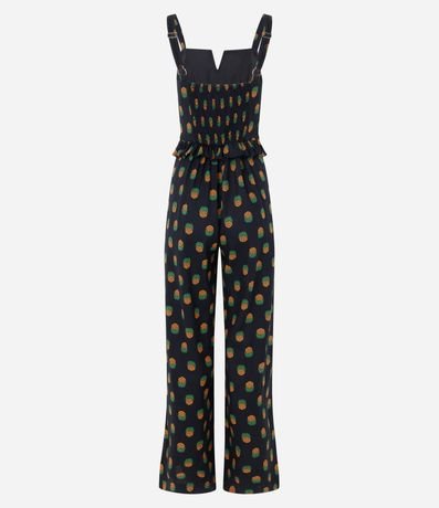 Macacão Longo em Viscolinho com Babadinhos e Estampa Abacaxis