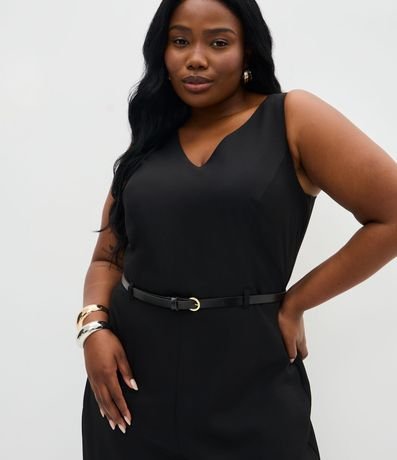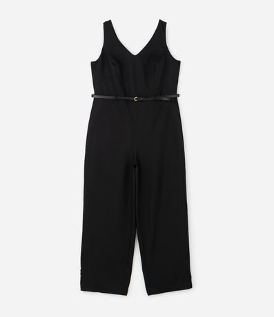 Macacão Longo Pantalona em Alfaiataria com Cinto Curve & Plus Size