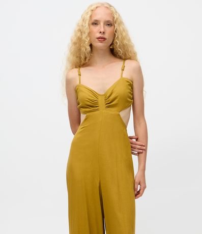 Ref: Macacão longo em linho com decote coração e alças duplas finas. O recorte no busto adiciona charme ao visual, enquanto a modelagem pantalona garante fluidez e conforto. Peça moderna e versátil para compor looks elegantes em dias quentes.