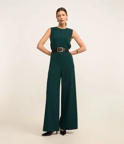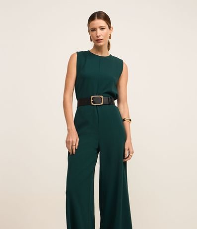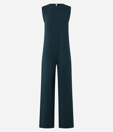 Ref: Macacão pantalona, sem mangas, confeccionado em crepe e com gola redonda. Possui abertura em formato de gota nas costas.