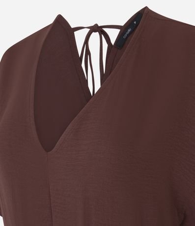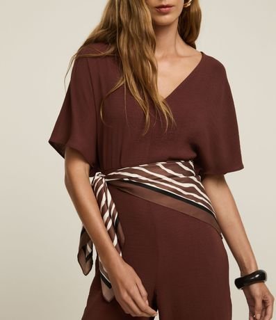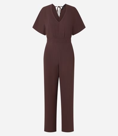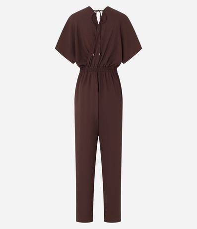 Ref: Macacão pantalona de mangas curtas, confeccionado em crepe, com decote V no busto e nas costas e amarração atrás do pescoço. Não acompanha o lenço. Este produto foi fabricado através de processos mais sustentáveis, sendo ambientalmente mais responsável.