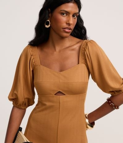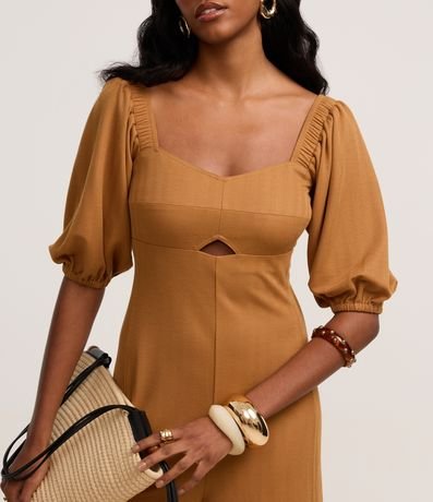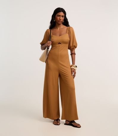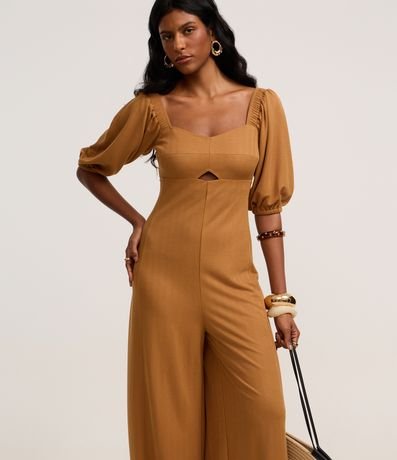 Macacão Pantalona em Viscose com Decote Coração com Manga Bufante