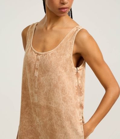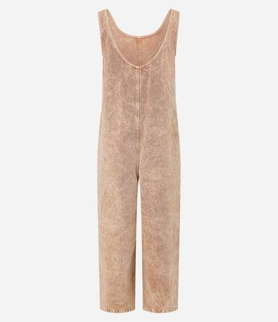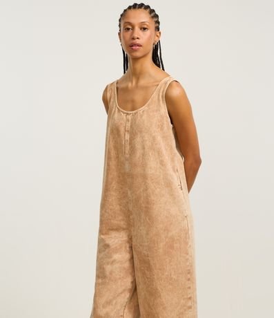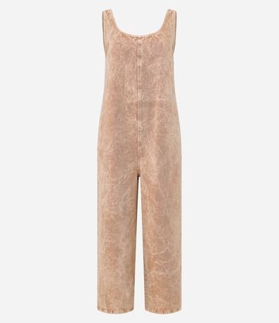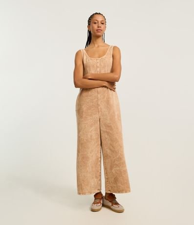 Ref: Macacão reto com alça larga, confeccionado em sarja em efeito manchadinho e produzido em boas práticas ambientais.