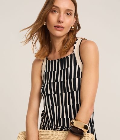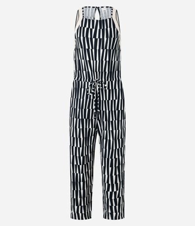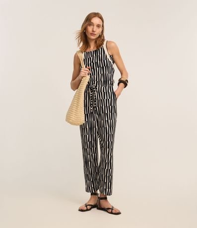 Macacão Reto em Viscose com Detalhes em Tricô e Estampa Geométrica