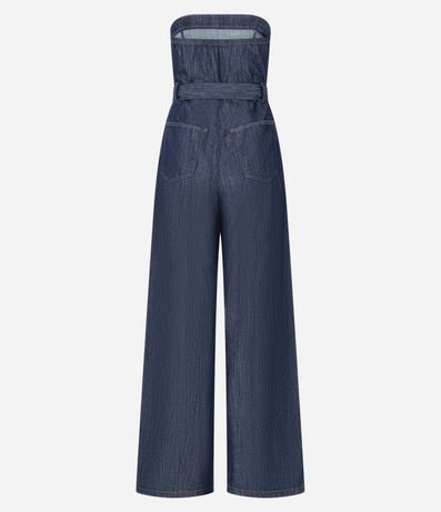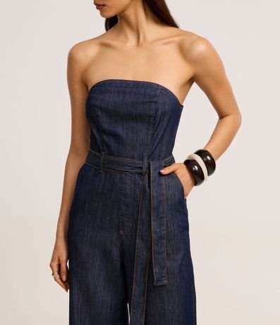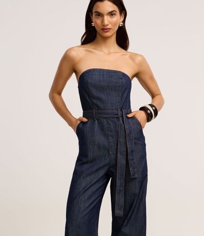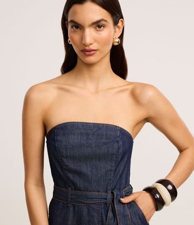 Macacão Sem Alça em Jeans com Cinto Amarração
