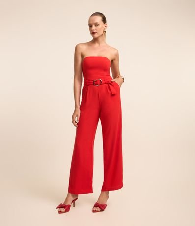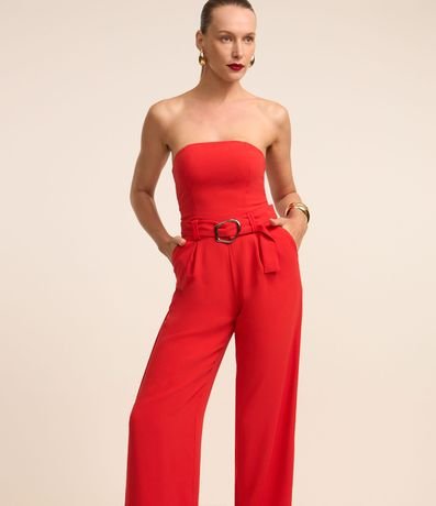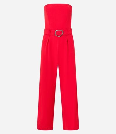 Macacão Tomara que Caia em Crepe com Cinto Fivela