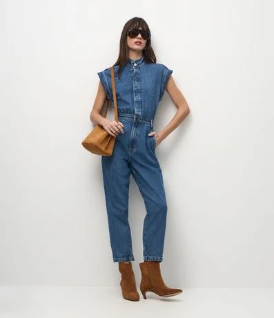 Ref: Macacão utilitário confeccionado em algodão certificado BCI, com gola padre estruturada, fechamento frontal oculto e acabamento sem mangas. Possui cintura ajustada com cós passante, bolsos funcionais e pernas afuniladas, criando visual moderno e versátil para composições casuais.