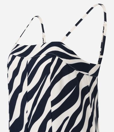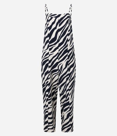 Ref: Macacão wide leg alfaiatado, confeccionado em crepe com elastano, com alças finas com regulagem, decote reto, recortes, fechamento por zíper nas costas e estampa animal print de zebra. Este produto foi fabricado através de processos mais sustentáveis, sendo ambientalmente mais responsável.