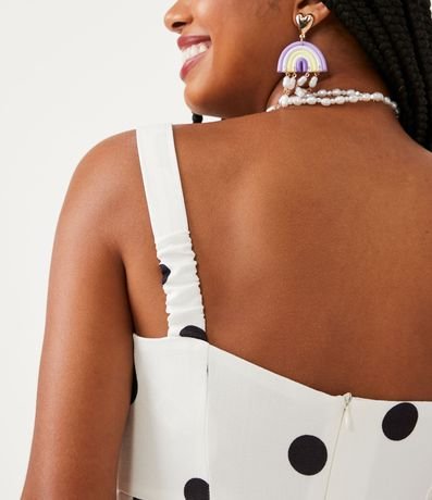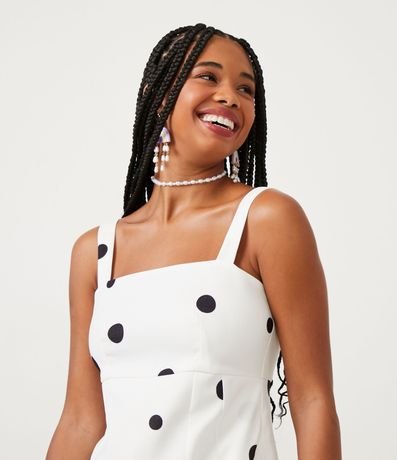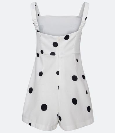 Ref: O macaquinho de alças com elástico em crepe é incrível para quem busca por conforto e montagem de looks práticos. A peça além da estampa poá, possui transpasse frontal dando ao item um efeito de vestidinho/saia.