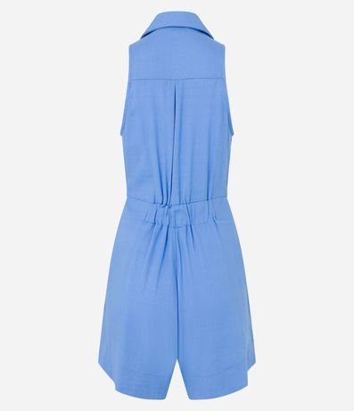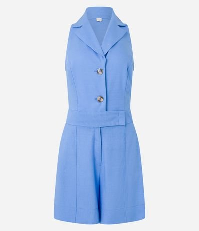 Ref: Macaquinho feminino em linho, com gola lapela, abotoamento frontal e sem mangas. A peça também conta com elástico nas cintura na parte das costas e recortes.