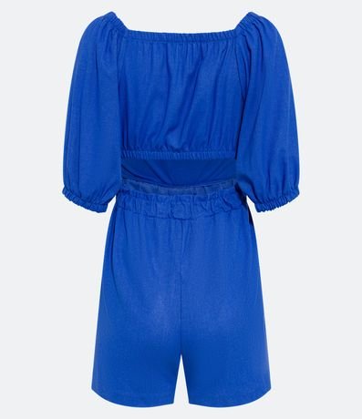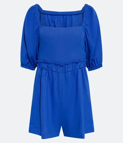 Macaquinho em Linho com Manga Balonê e Cós com Babado