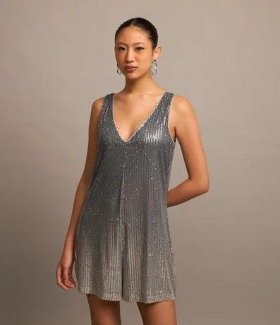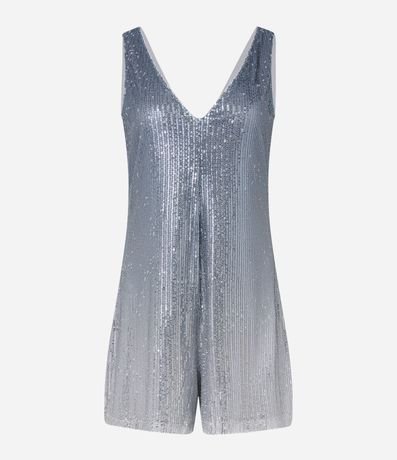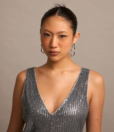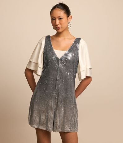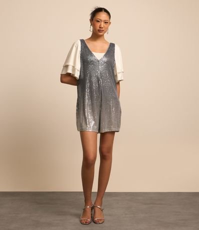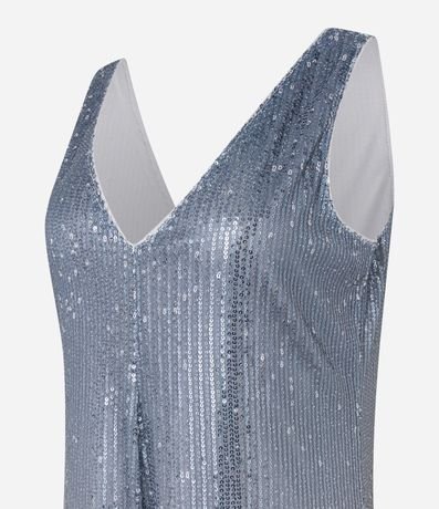 Ref: Macaquinho curto com alças largas, decote v e em paetês metalizados.