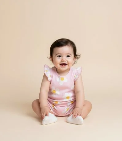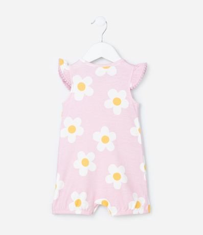 Ref: Macaquinho sem mangas, confeccionado em suedine, com gola redonda e babados nos ombros. Peça tem recorte no peito que conta com bolinhas aplicadas que vão desde as cavas, além de possui fechamento entreperna e estampa de flores de margaridas. Este produto possui algodão certificado BCI em sua composição, além de ter sido produzido através de processos mais sustentáveis com boas práticas ambientais, sendo ambientalmente mais responsável.