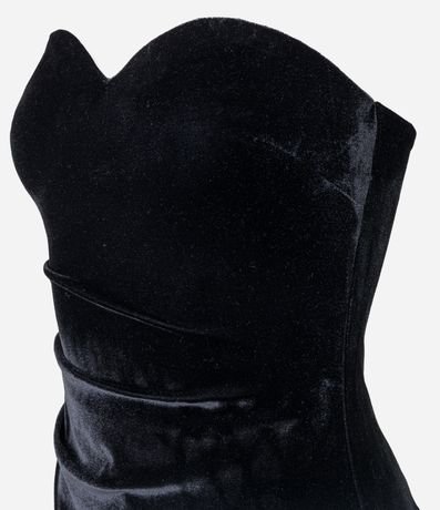 Macaquinho em Veludo com Decote Coração e Franzido na Saia