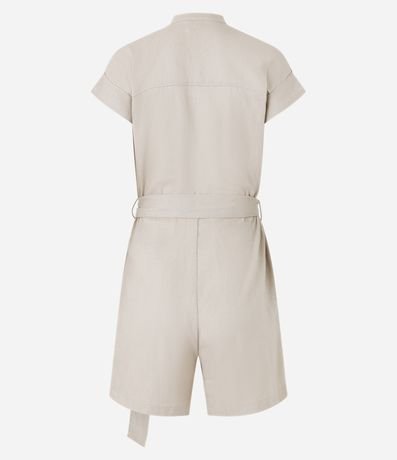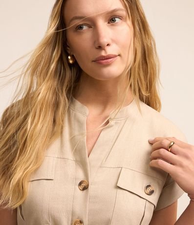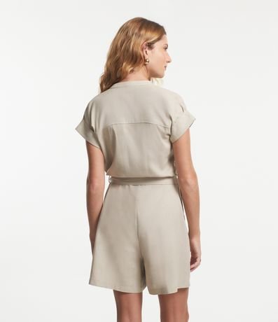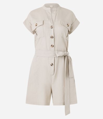 Ref: Macaquinho feminino, confeccionado em viscolinho, com amarração na cintura, abotoamento frontal e bolsos com lapela.