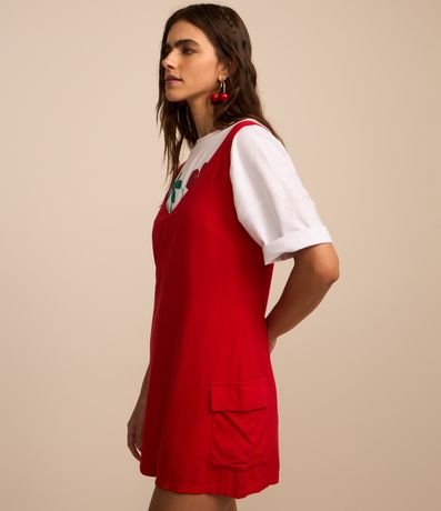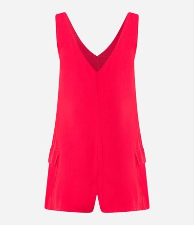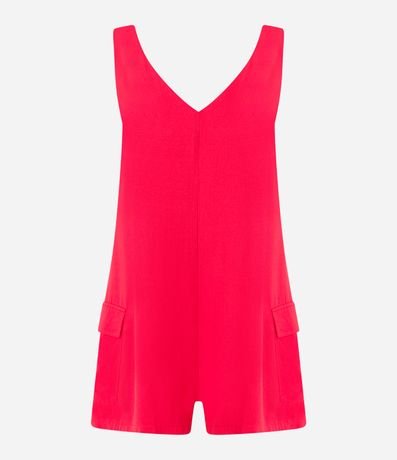 Ref: Macaquinho de alças largas, estilo pimpão, decote V frente e costas, sem estampa e cm bolsos nas laterais.