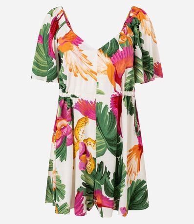 Macaquinho em Viscose com Estampa de Arara e Floral e Puxadinho Lateral