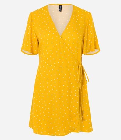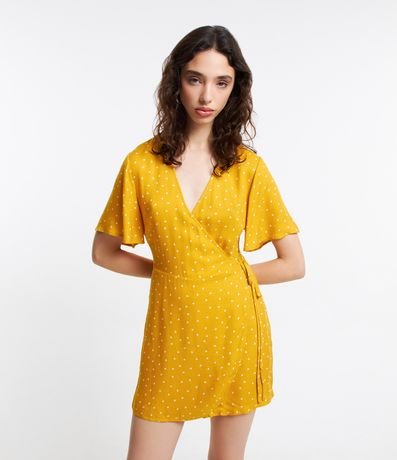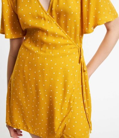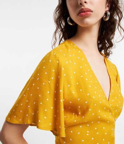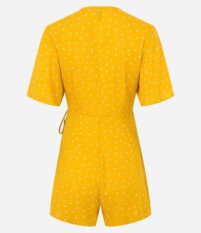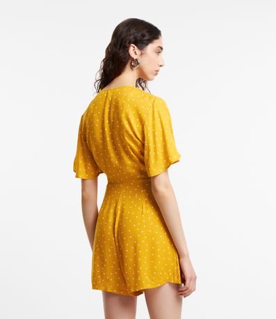 Ref: Macaquinho em viscose com decote V transpassado, mangas curtas, transpasse frontal e estamparia de poás - bolinhas.
