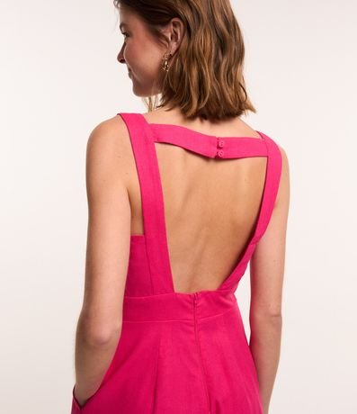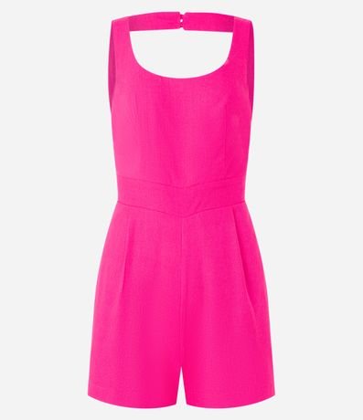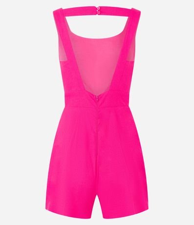 Ref: Macaquinho curto com alças largas, fechamento nas costas por zíper e botões no pescoço. Costas abertas e sem estampa.