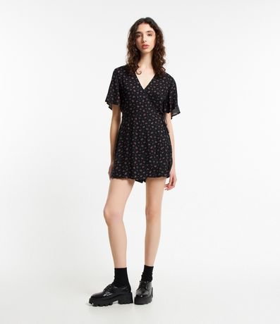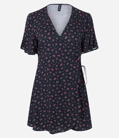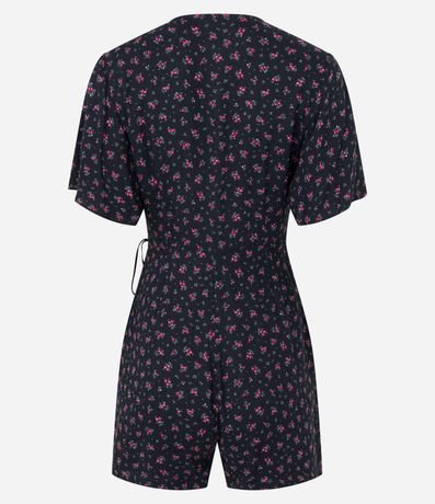 Ref: Macaquinho curto, confeccionado em viscose, manga curta com amarração na lateral e estampa floral liberty.