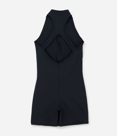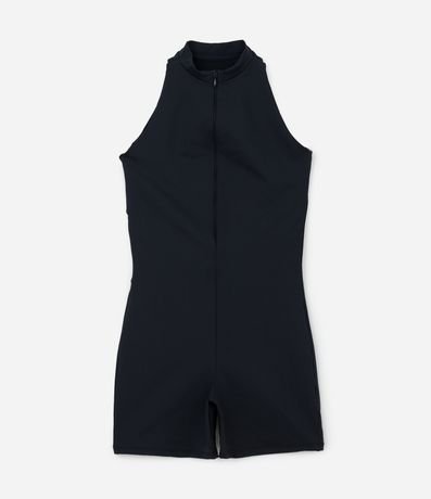 Ref: Macaquinho esportivo feminino, confeccionado em poliamida, com zíper da cintura até a gola, superfície sem estampa e detalhe nadador diferenciado nas costas.