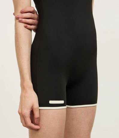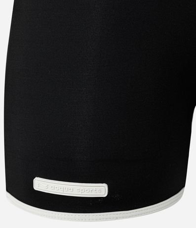 Macaquinho esportivo feminino confeccionado em microfibra através de boas práticas ambientais. Possui comprimento curto, decote funil, manga estilo regata, fechamento traseiro em zíper alongado, viés contrastantes e uma etiqueta emborrachada em relevo na barra "acqua sports".