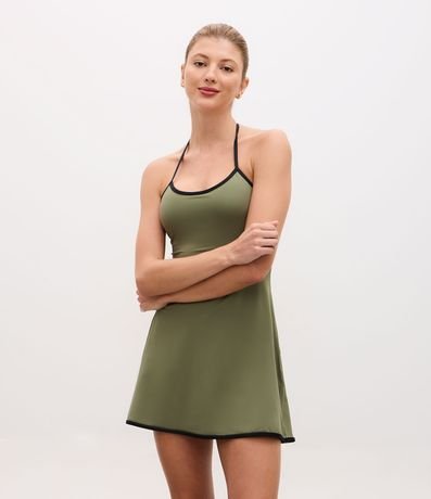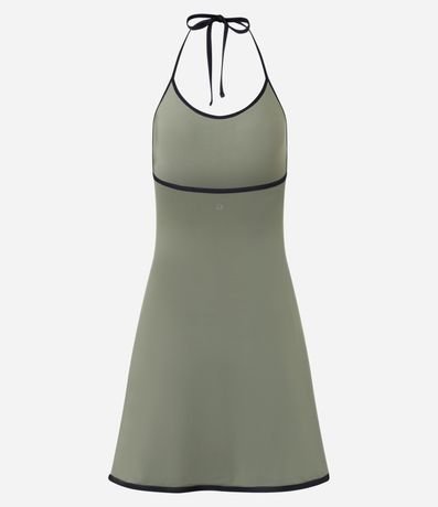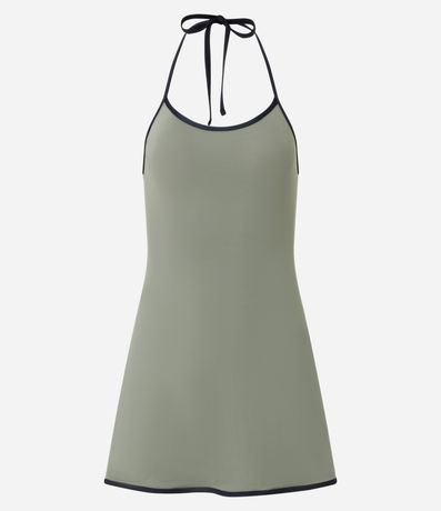 Macaquinho confeccionado em microfibra leve de poliamida, com acabamento liso e toque suave, ideal para uso esportivo e momentos de lazer. O modelo sem mangas apresenta frente única com amarração no pescoço, além de viés contrastante no decote e na barra, que destaca o design. Possui short interno embutido, garantindo conforto e segurança ao vestir, e caimento fluido que favorece a mobilidade. Versátil e funcional, é indicado para composições esportivas leves e uso casual no dia a dia.