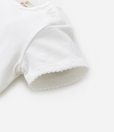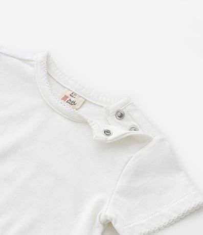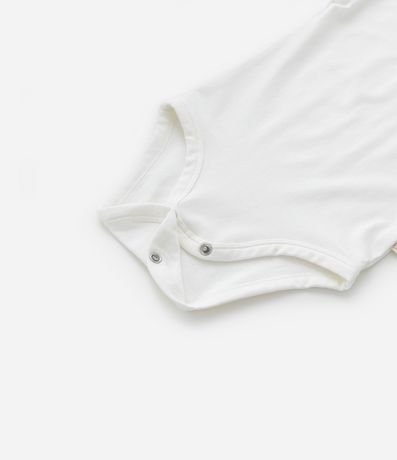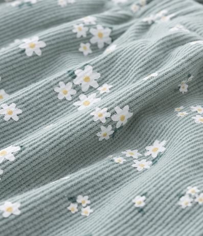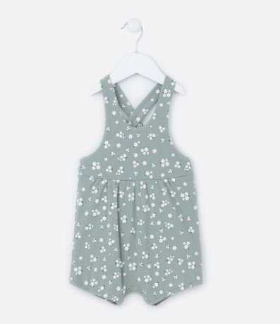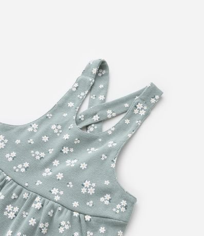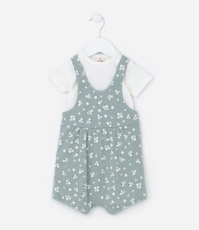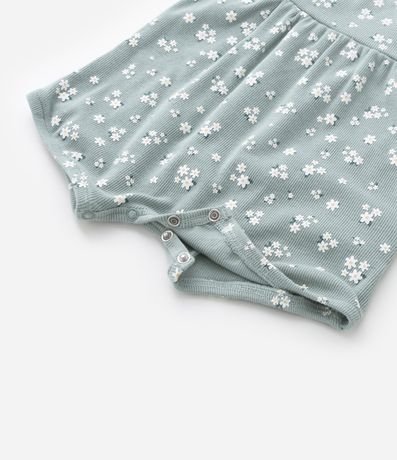 Ref: Macaquinho de bebê floralzinho, sem manga, tiras cruzadas nas costas, textura canelada e fechamento no entrepernas por botões de pressão. Acompanha body com manga curtinha e botãozinhos na gola e no entrepernas.