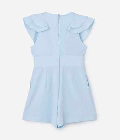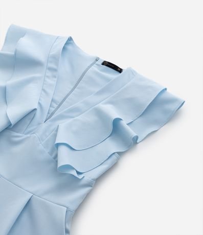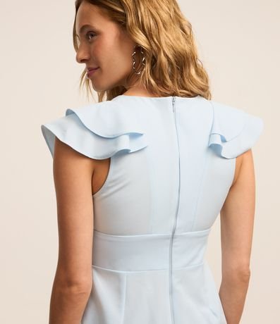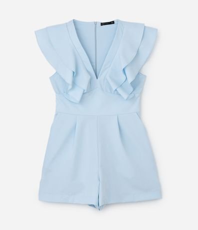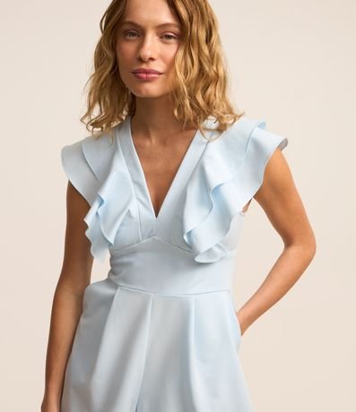 Ref: Macaquinho sem mangas confeccionado com decote V a babados nos ombros. Possui fechamento por zíper nas costas.