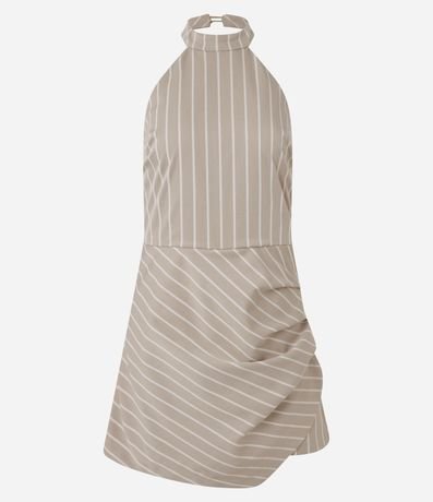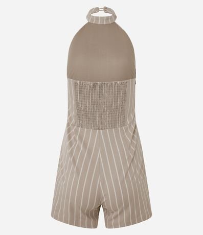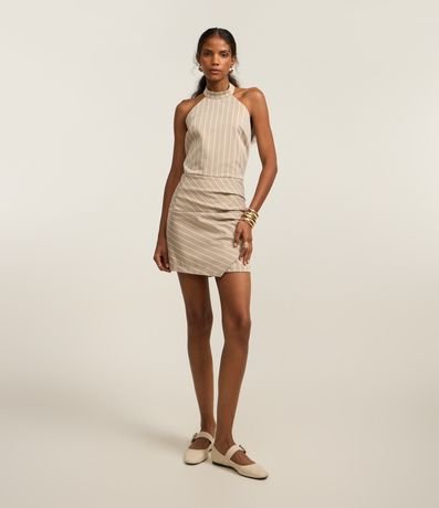 Macaquinho Short Saia em Alfaiataria com Listras e Franzido