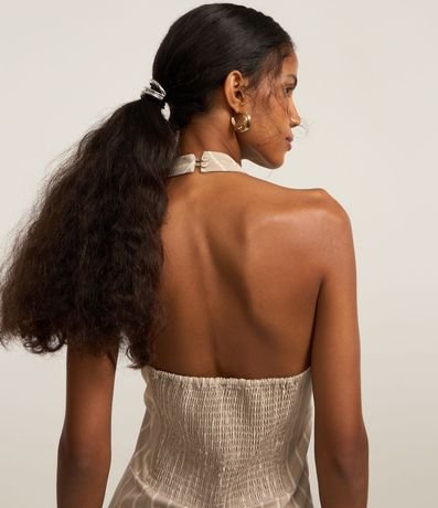 O lastex é a união do tecido com elástico formando um franzido, que pode estar incorporado em apenas uma parte da peça ou em toda ela. Geralmente encontrado em blusas, também encaixa perfeitamente em vestidos. Além de moderno ele é super confortável e confere segurança nos movimentos, por aderir perfeitamente ao corpo.