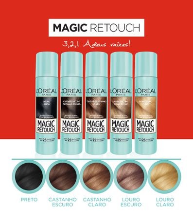 Ref: Magic Retouch L´oreal é uma maquiagem que disfarça as raízes brancas em apenas 3 segundos. Sua aplicação em spray é precisa, rápida e prática.