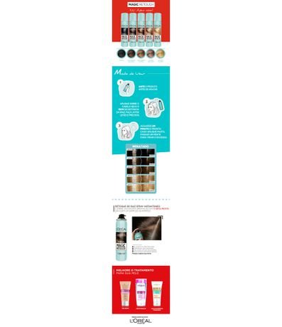 Magic Retouch L´oreal é um spray instantâneo e cobre temporariamente os fios brancos.Dura até 25 aplicações, é perfeito para aquela semana que não deu para ir ao cabeleireiro retocar a coloração.