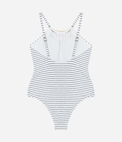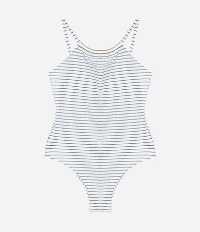 Maiô em Microfibra Canelada com Estampa Listrada e Aviamento Metálico