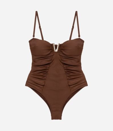 Ref: Maiô em poliamida drapeado com recorte vazado nas costas e detalhe frontal, além de possuir alças removíveis.