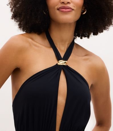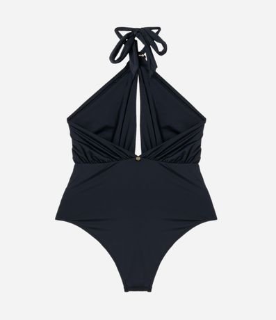 Ref: Maiô gola halter em microfibra leve com bojo removível e detalhe de aviamento metalizado no decote. Possui recorte frontal delicado e decote profundo nas costas, garantindo visual elegante e moderno para praia ou piscina. Peça confortável, estruturada e sofisticada.