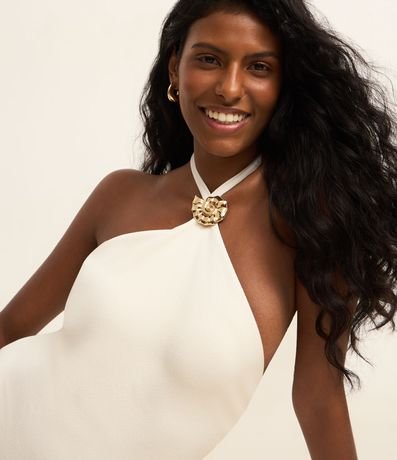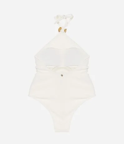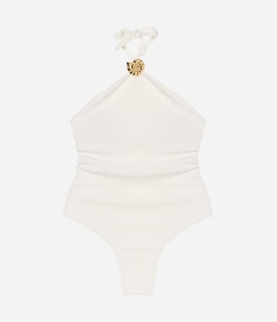 Maiô Halter em Microfibra Texturizada com Aviamento de Concha Caracol