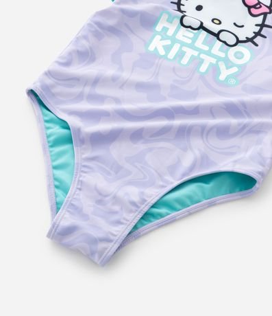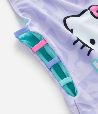 Maio infantil confeccionado em microfibra leve, com superfície suave, laterais com tiras aplicadas e estampa da Hello Kitty, personagem criada nos anos 1970 que se tornou referência da cultura kawaii. Peça confortável para dias de praia e piscina.