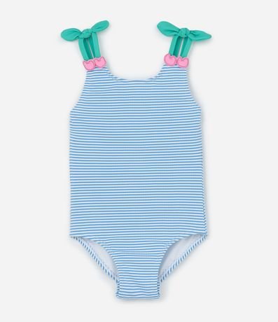 Maiô Infantil com Estampa Listrada e Cerejas Aplicadas - Tam 1 a 4 Anos 1 ao 4
