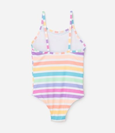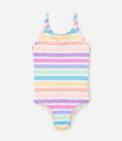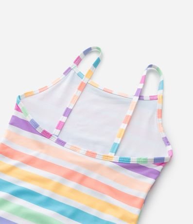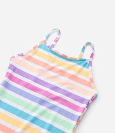 Ref: Maiô infantil confeccionado em microfibra com estampa listrada horizontal. As alças são paralelas e fixas (sem regulagem).